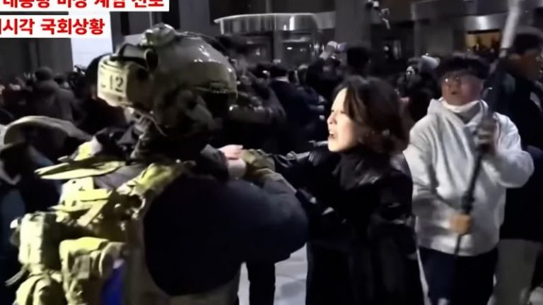 A South Korean politician who grappled with an armed soldier in a show of defiance outside the country’s National Assembly on Tuesday night said she felt like the “last line” of defense in preventing security forces from entering parliament.